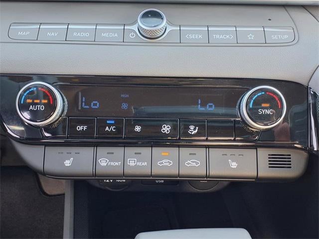- Radio: AM/FM/HD/SiriusXM Display Audio -inc: 10.25" high resolution touchscreen display, navigation, SirusXM data services: NavTraffic, NavWeather, sports and stocks w/3-month trial, 6 speakers, BlueLink+ connected car services, wired Apple CarPlay and Android Auto, Bluetooth® hands-free phone system w/voice recognition, dual USB ports and speed-sensitive automatic volume control