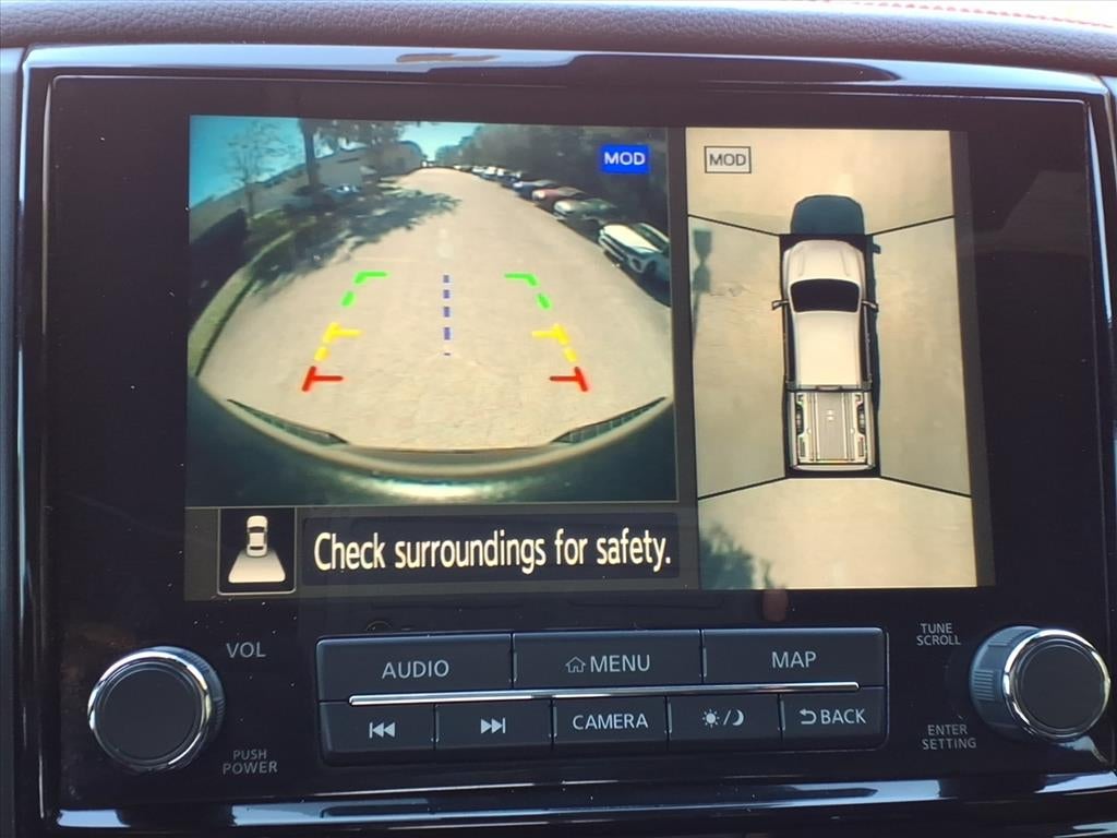 This 2020 Nissan Titan PRO-4X is a powerful and reliable vehicle. It has a 5.6 liter 8 cylinder engine with fuel injection and low mileage of 51,004 miles. This 4x4 Crew Cab 4x4 Vehicle has a baja storm hal exterior and a black interior with leather-trimmed seats. It has a crash test rating of 4 out of 5 stars and features such as touch screen display, Bluetooth® audio connection, blind spot sensor, hill start assist, part time four wheel drive, Apple Carplay ready, navigation system with voice recognition, and navigation with touch screen display. This car is sure to turn heads on the road!
